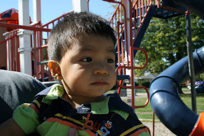 Looks like he really enjoyed the park. Love the haircut, such a little man now.